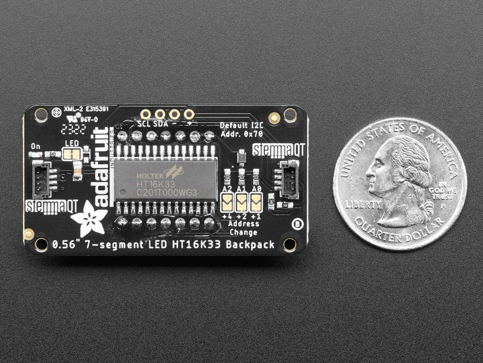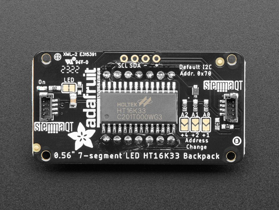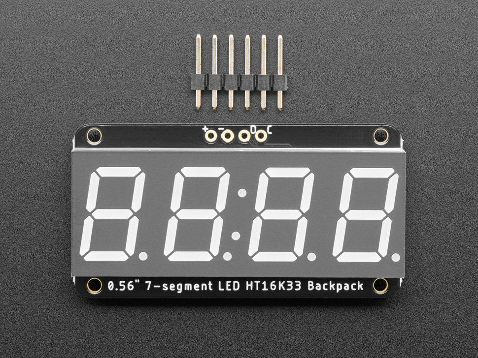 - A fully tested and assembled LED backpack with a pre-soldered ultra-bright 4-digit 0.56" tall red seven-segment display