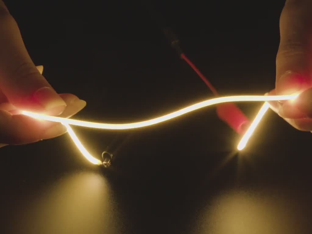 These are often seen in 'Edison-like' LED bulbs, shaped into hearts or stars or just wound around to create a fun or warm lighting effect. They're made of dozens of LED diodes that are bonded together on an ultra flexible metal backing, then coated in colorful silicone for protection. Since the LEDs are in parallel, you only need 3V to light 'em up.