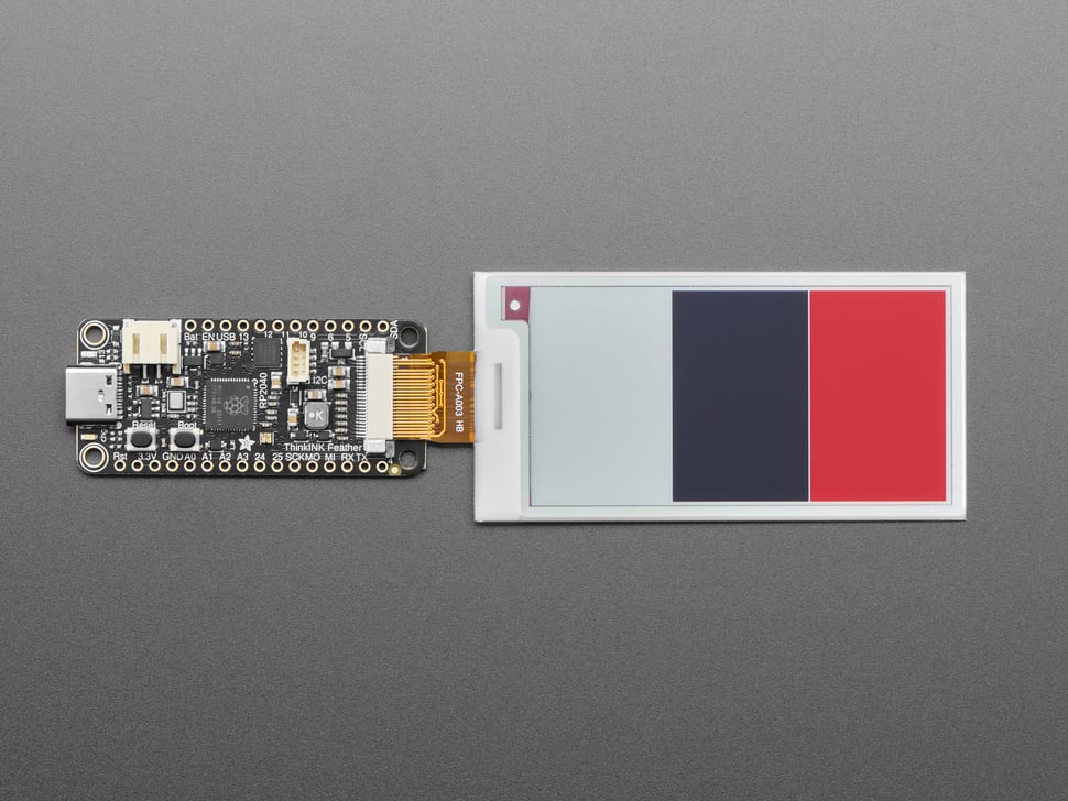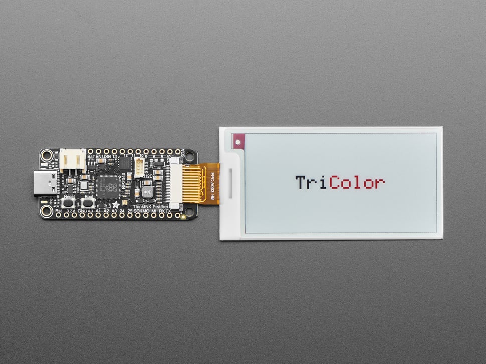 • Feather RP2040 ThinkInk - solderless plug-and-play solution with Arduino or CircuitPython support. Definitely the easiest way to get started, and is what we show in the demo above