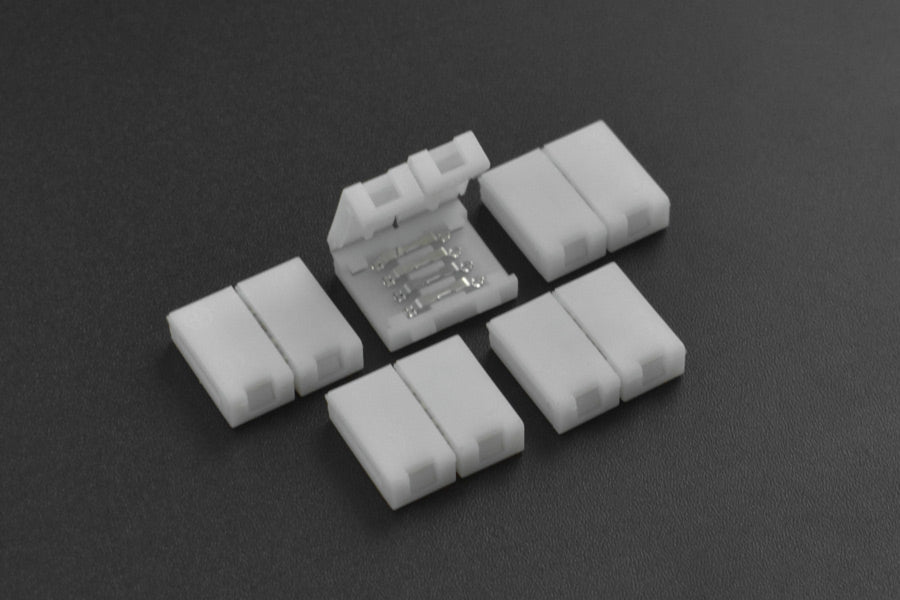 This 4-Pin solderless strip connector with a snap-down design makes a firm and easy connection of 10mm wide 4-wire RGB LED strips. Just align and snap them together, job done!