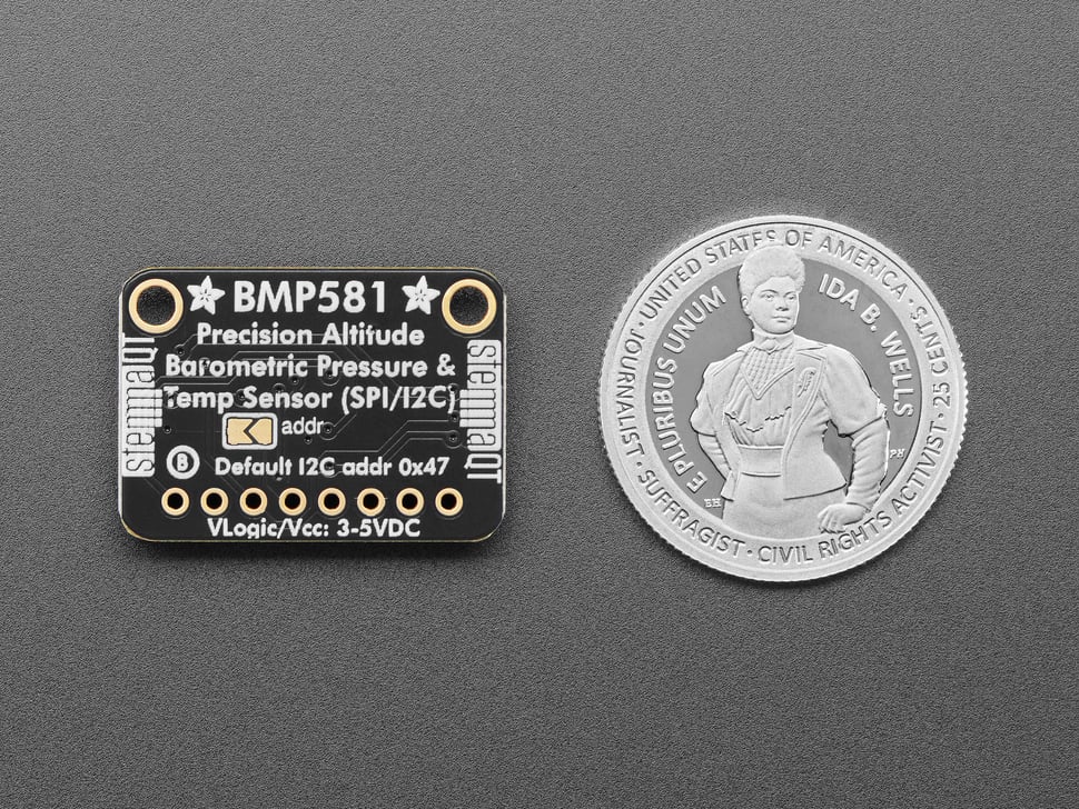 The BMP58x is the next-generation of sensors from Bosch and is the upgrade to the BMP2xx and BMP3xx - with a low-altitude noise as low as 1cm (0.08Pa) and the same fast conversion time. And like the previous BMP280, you can use I2C or SPI. For simple easy wiring, go with I2C. If you want to connect a bunch of sensors without worrying about I2C address collisions, go with SPI.