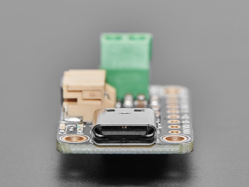 • USB Type C connector with 5.1k CC resistors so it will work with any computer or power supply to get 5V and up to 1A. Data lines available if needed, on the bottom breakout.