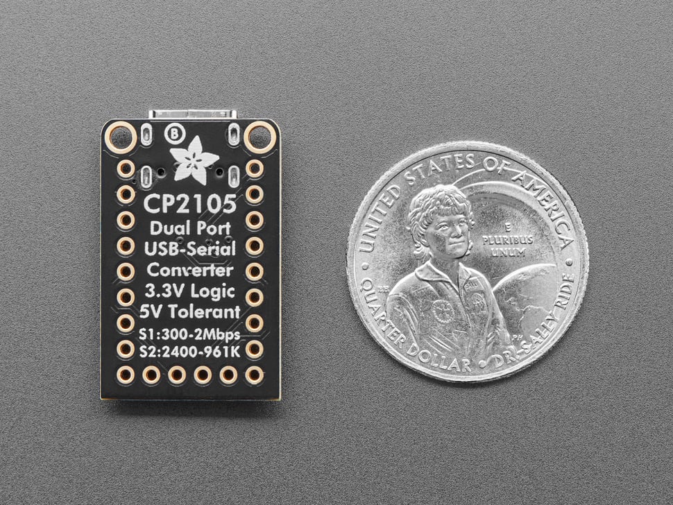 On our first Pentium 120 tower (purchased at PCs for Everyone on Thorndike st in Cambridge Mass) came with two DE-9 serial ports on the back: COM1 and COM2. Perfect for connecting a mouse and maybe a modem. Nowadays, long gone are the days of parallel ports and serial ports. Now the USB port reigns supreme! But USB is hard, and you just want to transfer your every-day serial data from two serial ports to a single USB port without the complexity of a hub. What now? Enter the Adafruit CP2105 Friend!