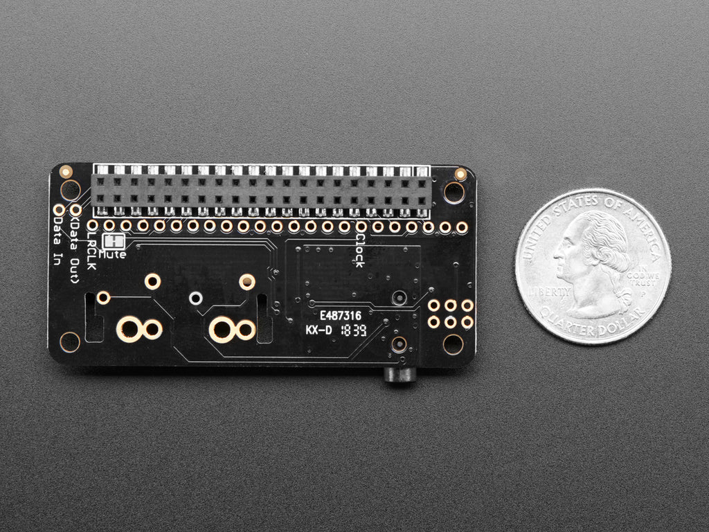 Each order comes as a fully tested and assembled PCB with a 2x20 socket connector. No soldering required! Plug it right onto your pi, install the script and reboot. Pow, you're makin' lovely sounds. Want an RCA jack output? We have a solder-in-able stereo jack as a separate component