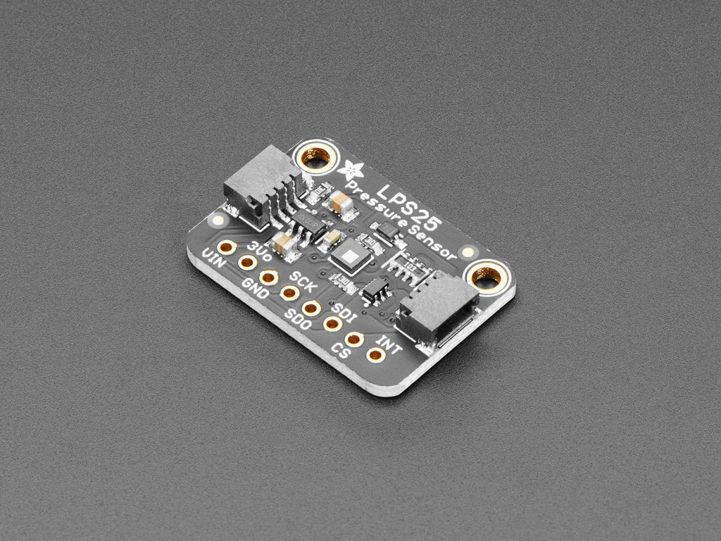 These days, helpful little sensors like the LPS25 are often quite little and tend to come in surface-mount packages that make them tricky to use with breadboards. With that in mind, we've taken the LPS25 and put it on a breakout board with level shifting circuitry and a voltage regulator. This means that not only can you use it with a breadboard, but you can use it with a wide range of devices that have either a 3.3V logic level, like a Raspberry Pi or CircuitPython compatible Metro M4 Express, or with a 5V logic level device like a Metro 328 or Arduino Uno.