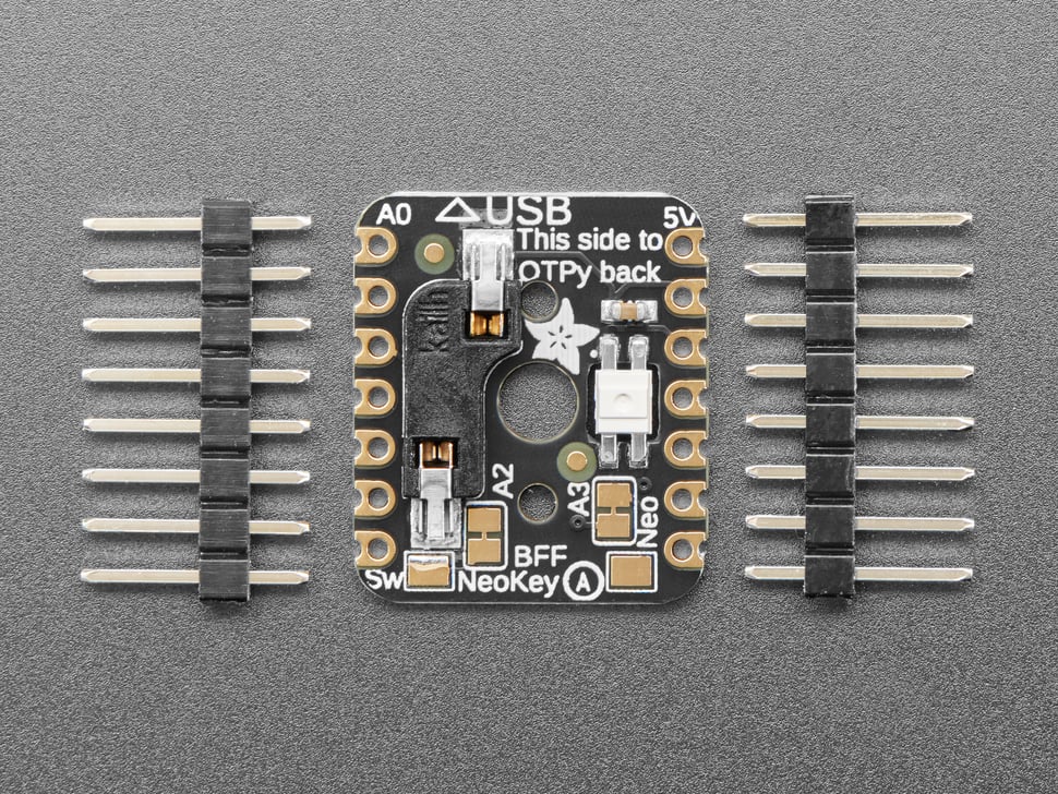 We call this the Adafruit NeoKey BFF - a "Best Friend Forever". When you were a kid you may have learned about the "buddy" system, well this product is kinda like that! A board that will watch your QT Py's back and give it more capabilities.