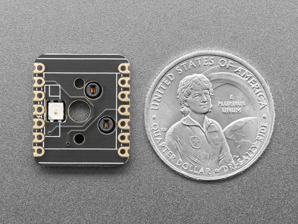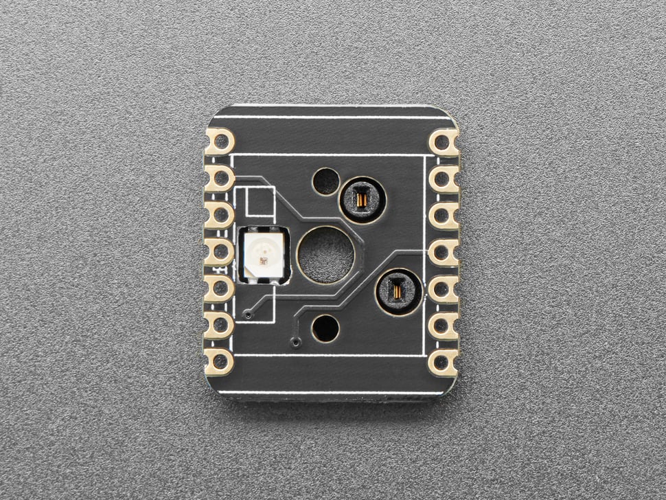 This PCB is designed to fit onto the back of any QT Py or Xiao board; it can be soldered into place or use pin and socket headers to make it removable. Onboard is a Kailh socket, which means you can plug in any MX-compatible switch instead of soldering it in. You may need a little glue to keep the switch in place: hot glue or a dot of epoxy worked fine for us. Also comes with a single reverse-mount NeoPixel pointing up through the spot where many switches would have an LED to shine through.