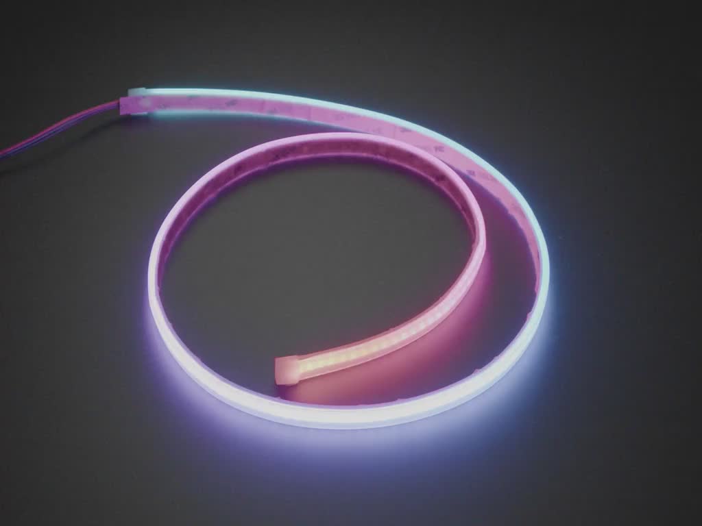 Plug in and glow with this incredible, ultra-high-density NeoPixel strip with an astonishing 180 LEDs/meter. That's no typo; this meter-long strip has 180 miniature NeoPixels crammed together and coated with a milky silicone bead to give it a smooth and continuous color gradient compared to classic LED pixel strips.