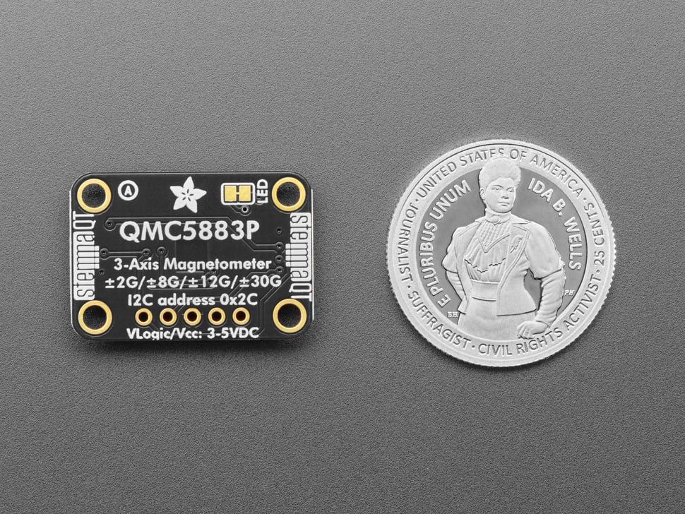 To make life easier so you can focus on your important work, we've taken the QMC5883P and put it onto a breakout PCB along with support circuitry to let you use this little wonder with 3.3V (Feather/Raspberry Pi) or 5V (Arduino/ Metro328) logic levels. Additionally, since it speaks I2C you can easily connect it up with two wires (plus power and ground!). We've even included SparkFun qwiic compatible STEMMA QT connectors for the I2C bus so you don't even need to solder! Just wire up to your favorite micro and you can use our CircuitPython/Python or Arduino drivers to easily interface with the QMC5883P and get magnetic measurements ASAP. QT Cable is not included, but we have a variety in the shop.
