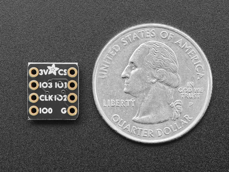 To make prototyping and designing with QSPI flash a little easier, we designed these breakouts that convert the wide 8-SOIC packages to a cute 0.3" wide DIP. We find these handy when testing out different flash sizes, or if we just want to add more storage memory to a project.