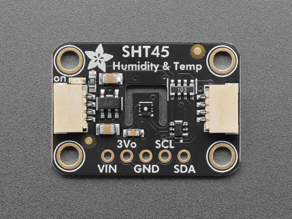Such a lovely chip - so we spun up a breakout board with the SHT45 and some supporting circuitry such as pullup resistors and capacitors. To make things even easier, we've included SparkFun Qwiic compatible STEMMA QT connectors for the I2C bus so you don't even need to solder! QT Cable is not included, but we have a variety in the shop.