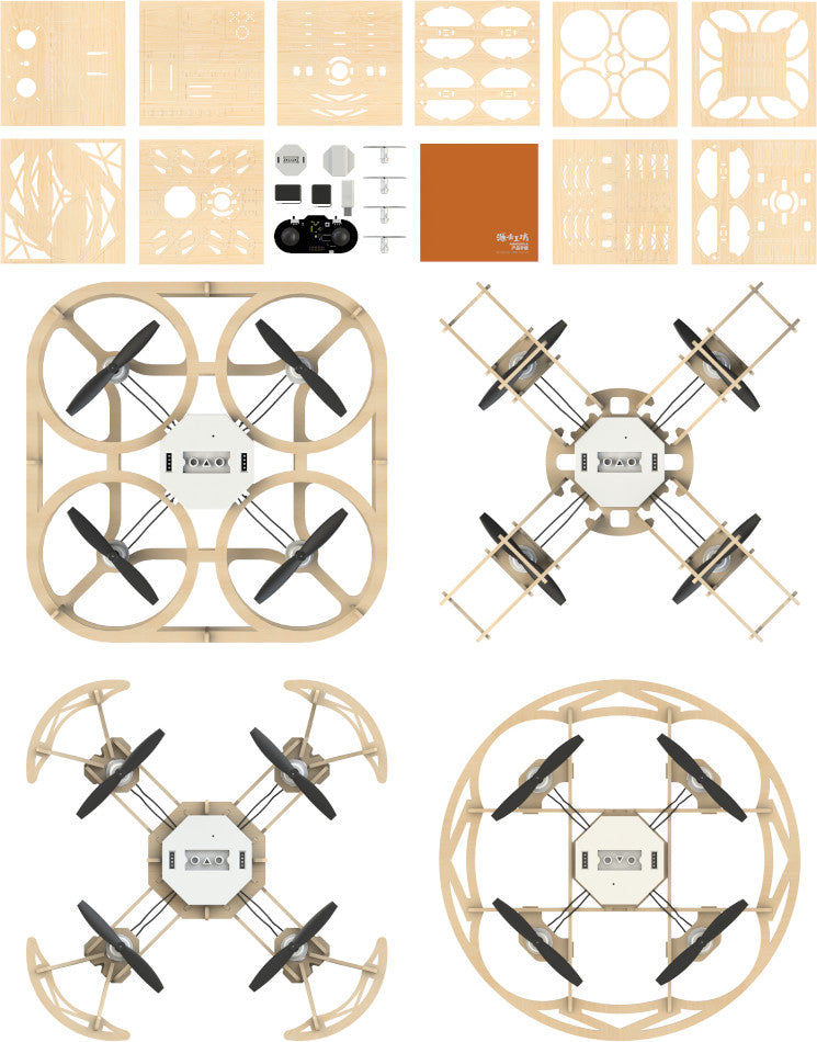 You can use this kit to build different frames for your airwood drone and fly it for different purposes.