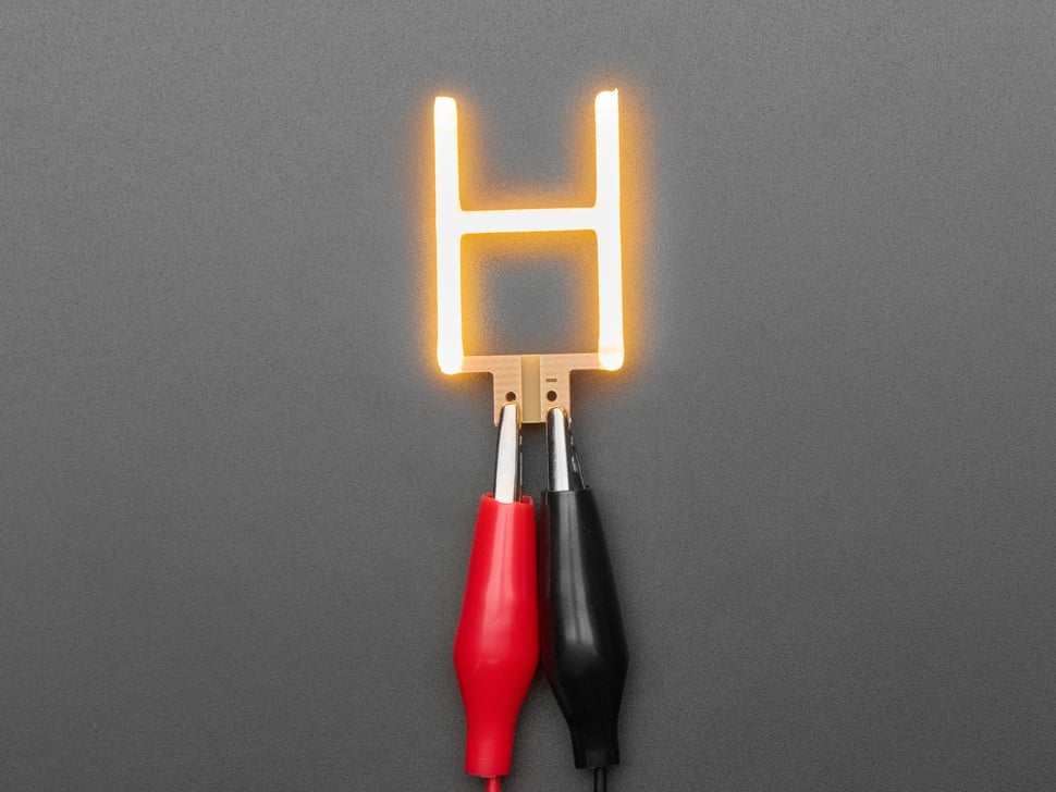 This warm-white glowy letter is made out of COB (chip on board) LEDs, often seen in 'Edison-like' LED bulbs, arranged in different patterns to give a bright, warm lighting effect. They're made of dozens of micro LED diodes that are bonded together on a stiff metal backing and then coated in silicone for protection. Even though the LEDs are only placed on one side, the PCB substrate is very thin so it glows out the back too (although a little dimmer)