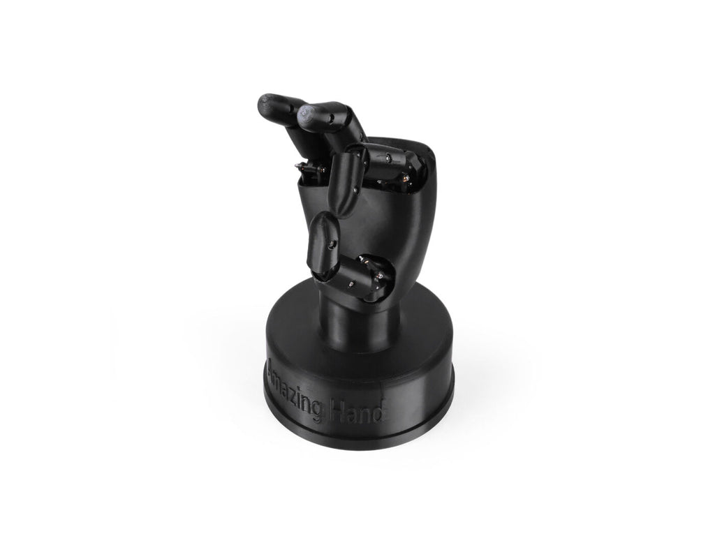 Amazing Hand is a 3D-printed, open-source humanoid hand with 8 degrees of freedom and four fingers. Fully actuated internally, lightweight (400 g), and low-cost, it features flexible shells for natural movement. Perfect for research, education, and robotics, it combines dexterity, simplicity, and accessibility in one compact design.