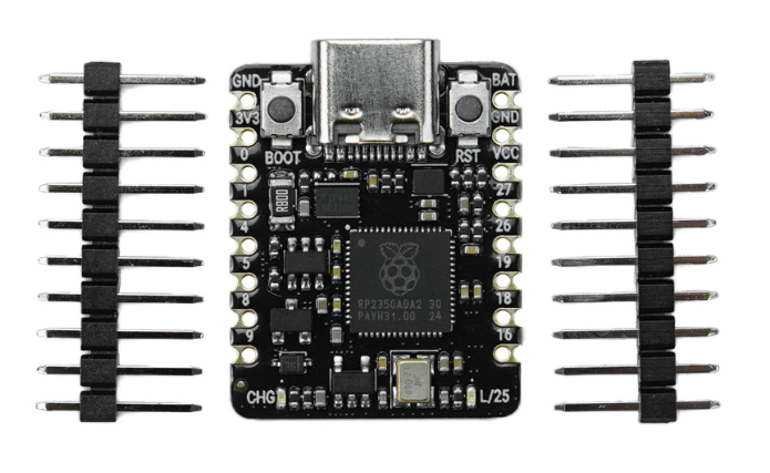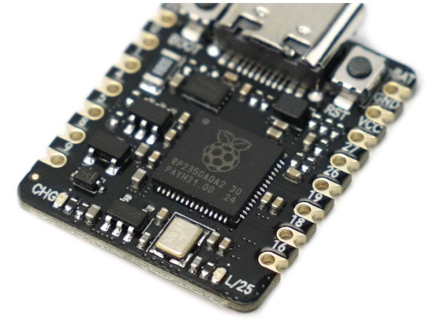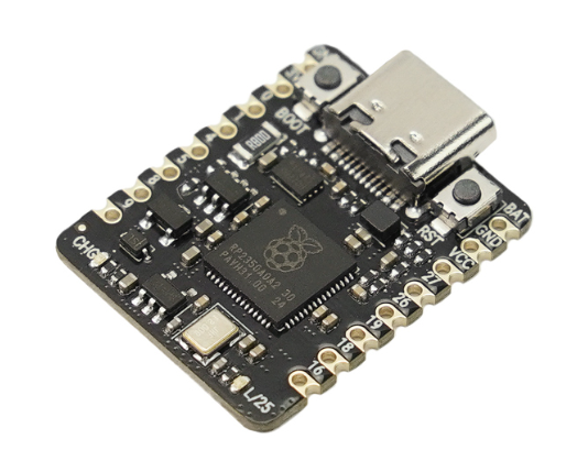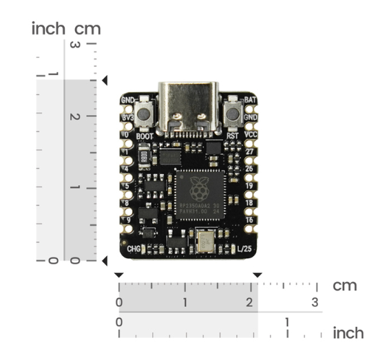 With a coin-sized footprint of 25 × 20.5mm, the Beetle RP2350 provides a high level of integration without sacrificing functionality. It includes 11 accessible IOs, allowing flexibility for various peripheral connections. Additionally, the board features built-in lithium battery charging management and voltage monitoring, ensuring uninterrupted operation by monitoring power levels and recharging when necessary.