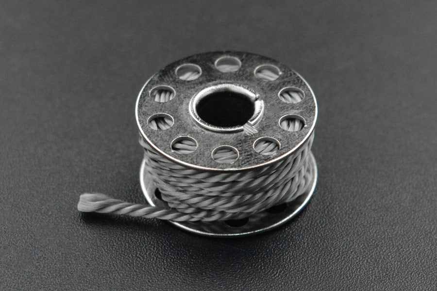 This is a smooth stainless steel fiber conductive sewing thread. It features small resistance, good thermal conductivity, high melting point and high-temperature resistance. One roll has 1m sewing thread, and about 2Ωper 1m. The diameter of the wire is 0.96mm. It can be used for making touchscreen gloves, anti-static clothing, wearable electronic equipment, anti-static brush, driving LED and other small current electronic components.