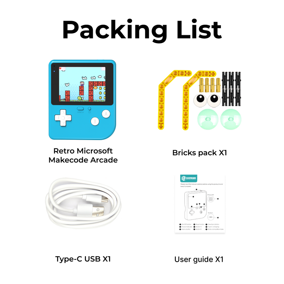 The advantages of high resolution and large screen, combined with the Microsoft MakeCode Arcade editor that provides us with a lot of programming teaching and many interesting games, make it easier and more enjoyable for children to create games and learn programming.