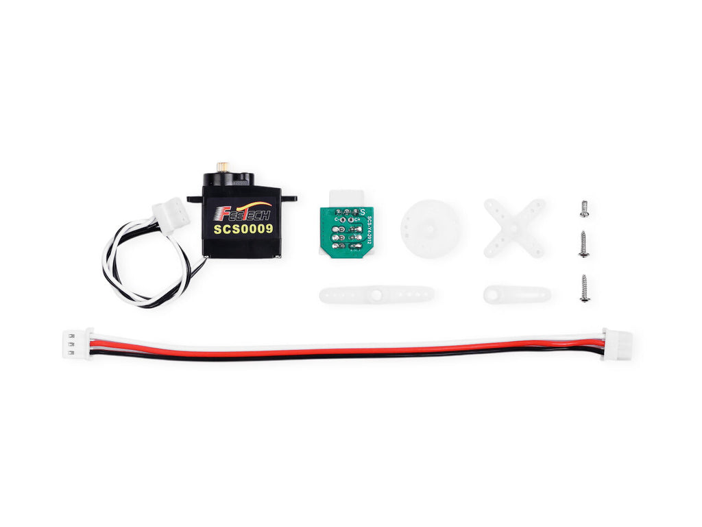 SCS0009 is 6V 2.3kg serial bus ultra-compact smart servo, with plastic case, core motor, 1:416 metal gearbox and 10 bit high precision magnetic coding sensor. The stall torque is 2.3 kg. cm and the rated torque is 0.75kg. cm. Because of its compact size, SCS0009 can be used as actuators in dexterous hand or microrobotics, such as Amazing Hand.