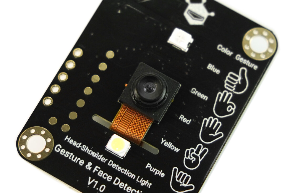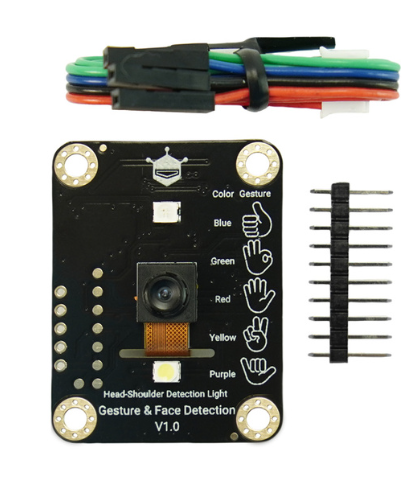 The sensor accurately recognizes 5 predefined gestures at distances up to 3 meters, enabling intuitive and contact-free interaction. Ideal for applications such as non-contact device operation, smart home control, and interactive public displays.Human Presence and Motion DetectionWith built-in head-and-shoulder detection, the sensor identifies human presence and movement in its field of view. It outputs the number and coordinates of detected upper-body targets, allowing smart devices like fans or lighting systems to dynamically respond to user location—enhancing automation and energy efficiency. Versatile Integration and Seamless ConnectivitySupporting both I2C and UART communication, the sensor integrates easily with various embedded platforms. Operating at 3.3V–5V, it is also compatible with graphical programming platforms such as MakeCode and Mind+, simplifying development and deployment.