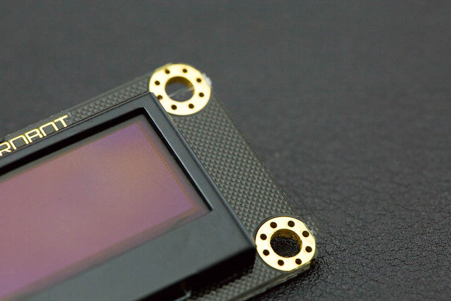 Our Gravity OLED 12864 display is a self-luminous display module with a blue background. The display areas is 0.96”and uses an IC SSD1306 chip. The OLED screen supports I2C communication and refresh rates of up to 60Hz. The module uses the Gravity I2C common interface for easy plug and play usage – meaning you can connect it without the need for wires - just plug it straight in to your device. The display bezel is constructed from aluminum alloy which protects the screen from scratches and damage.