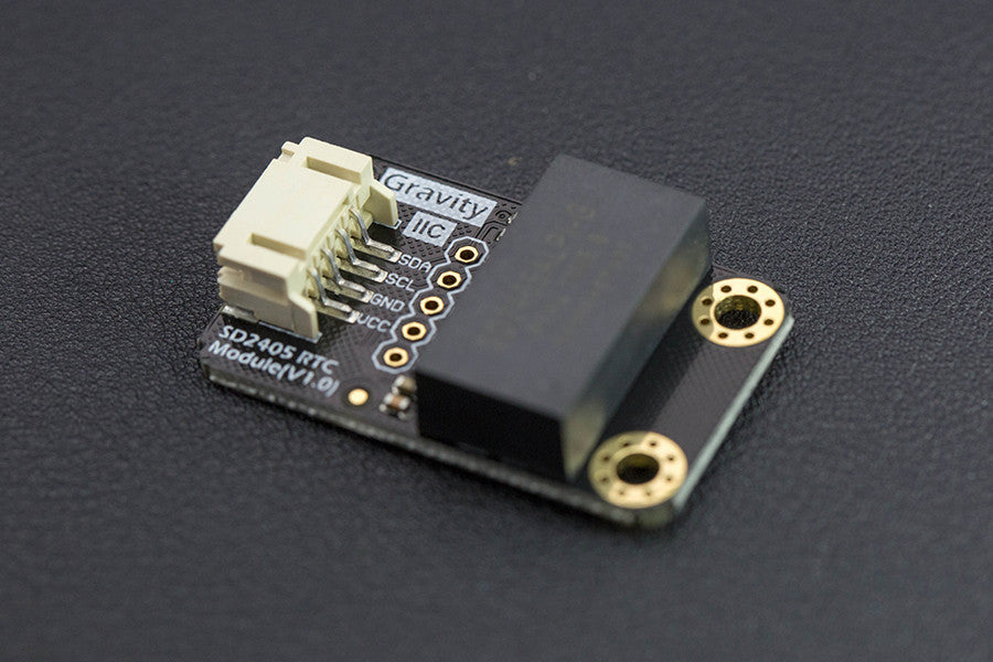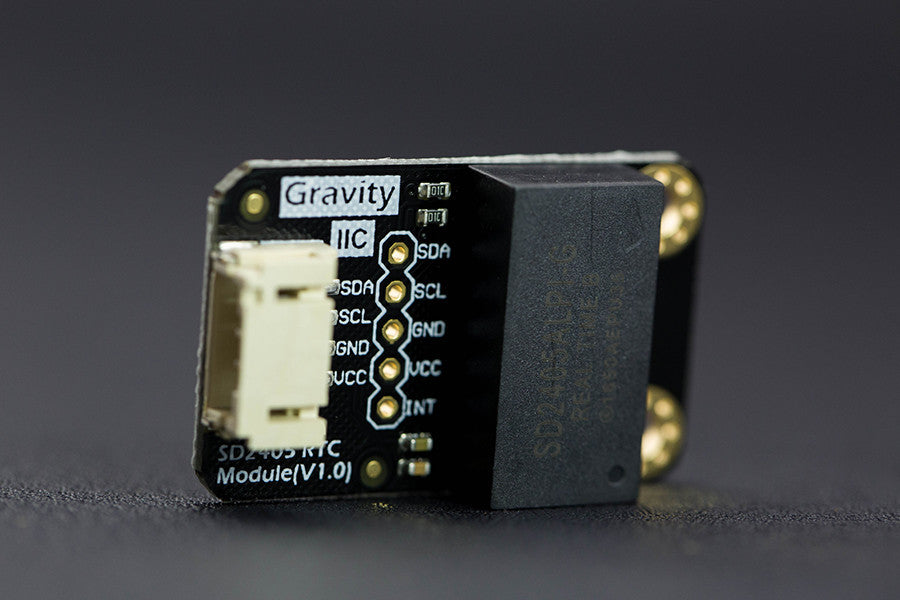 We're glad to introduce a new member in Gravity family: Gravity I2C SD2405 RTC module. This is an extremely accurate I2C real-time clock (RTC) with crystal compensation, inner chargeable battery. The SD2405AL is available in industrial temperature ranges.
