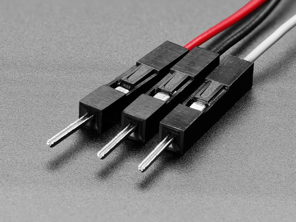 If you fancy connecting to anything else with a JST SH compatible 3-pin connector, this cable will do the trick. For example, our NeoPixel JST Breakout boards, or UPDI Friend, or Sparkle Motion, or other boards we have with JST SH connectors on them for simple digital/analog IO. It has a 1mm pitch JST SH connector on one end, and 0.1" pitch plug/pin connectors on the other.