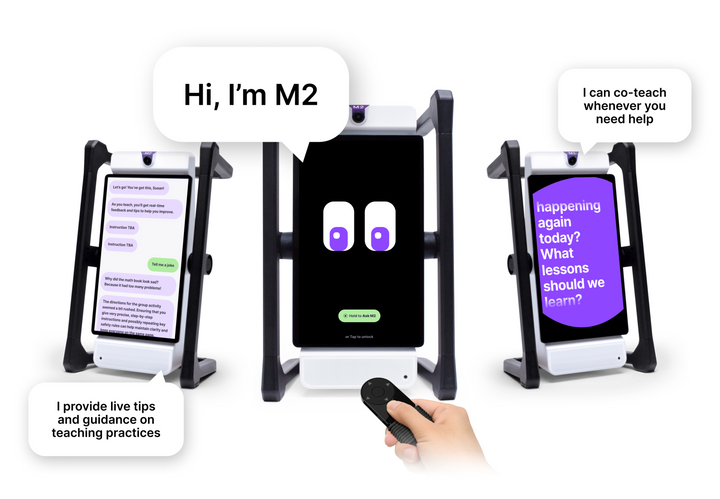 M2 can step into the lesson on command, serving as an engaging, knowledgeable co-teacher offering real-time support.