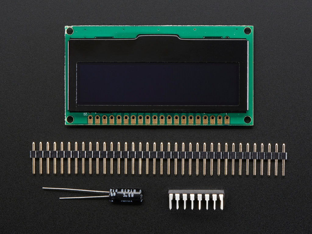 Each order comes with one assembled OLED module with a nice bezel and 4 mounting holes. The display is 3V logic & power so we include a HC4050 level shifter. We also toss in a 220uF capacitor, as we noticed an Arduino may need a little more capacitance on the 3.3V power supply for this big display! This display does not come with header attached but we do toss in a stick of header you can solder on. Also, the display may come in 8-bit mode. You can change modes from 8-bit to SPI or I2C with a little soldering, check out the tutorial for how to do so.