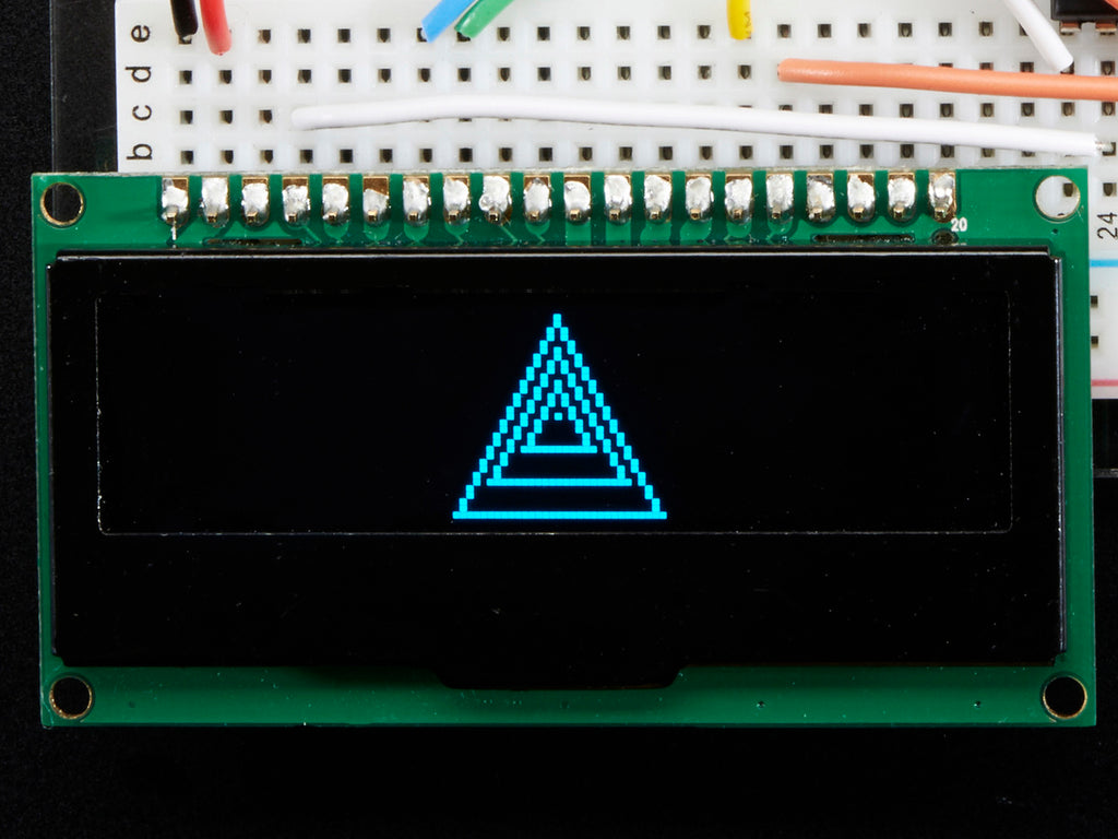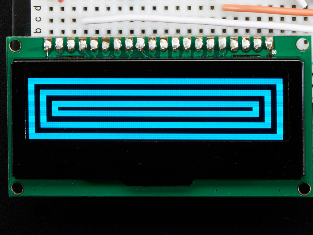If you've been diggin' our monochome OLEDs but need something bigger, this display will delight you. These displays are 2.3" diagonal, and very readable due to the high contrast of an OLED display. This display is made of 128x32 individual blue OLED pixels, each one is turned on or off by the controller chip. Because the display makes its own light, no backlight is required. This reduces the power required to run the OLED and is why the display has such high contrast; we really like this graphic display for its crispness!