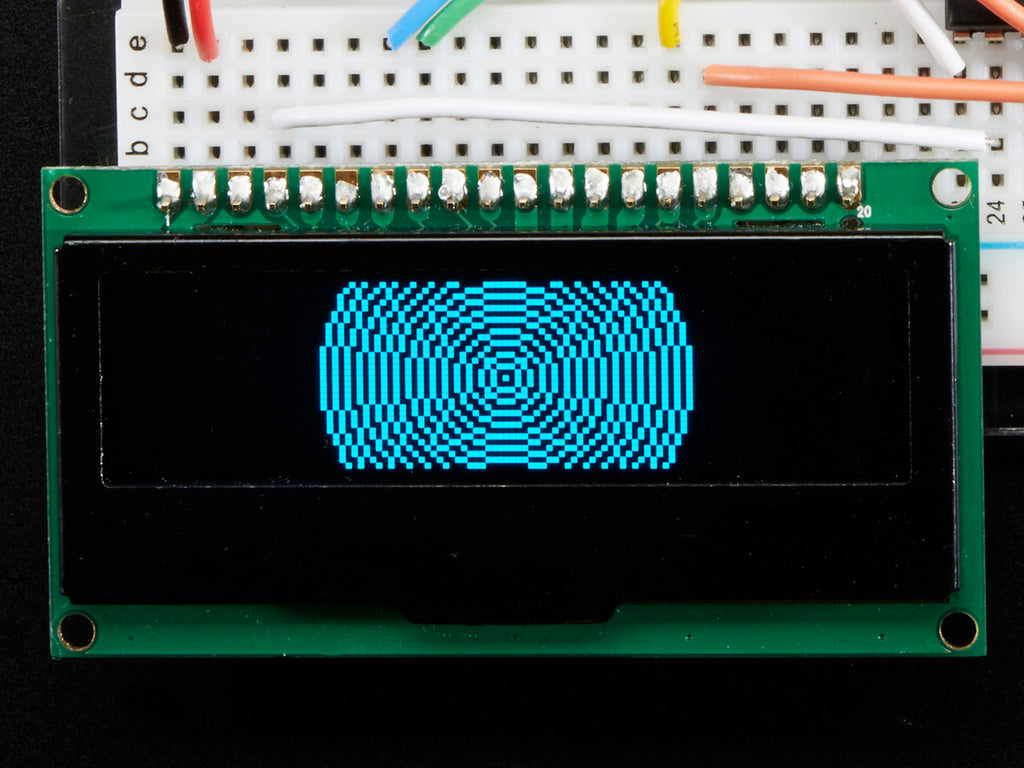 Getting started is easy! We have a detailed tutorial and example code in the form of an Arduino library for text and graphics. You'll need a microcontroller with more than 512 bytes of RAM since the display must be buffered. The library can print text, bitmaps, pixels, rectangles, circles and lines. It uses 512 bytes of RAM since it needs to buffer the entire display but its very fast! The code is simple to adapt to any other microcontroller.