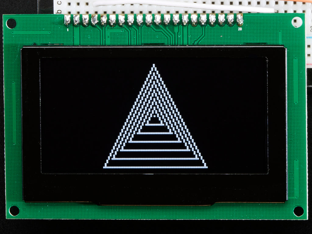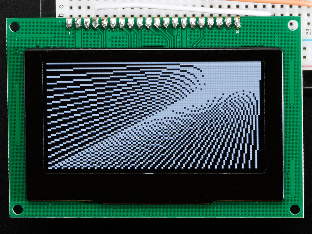 Getting started is easy! We have a detailed tutorial and example code in the form of an Arduino library for text and graphics. You'll need a microcontroller with more than 1K of RAM since the display must be buffered. The library can print text, bitmaps, pixels, rectangles, circles and lines. It uses 1K of RAM since it needs to buffer the entire display but its very fast! The code is simple to adapt to any other microcontroller.