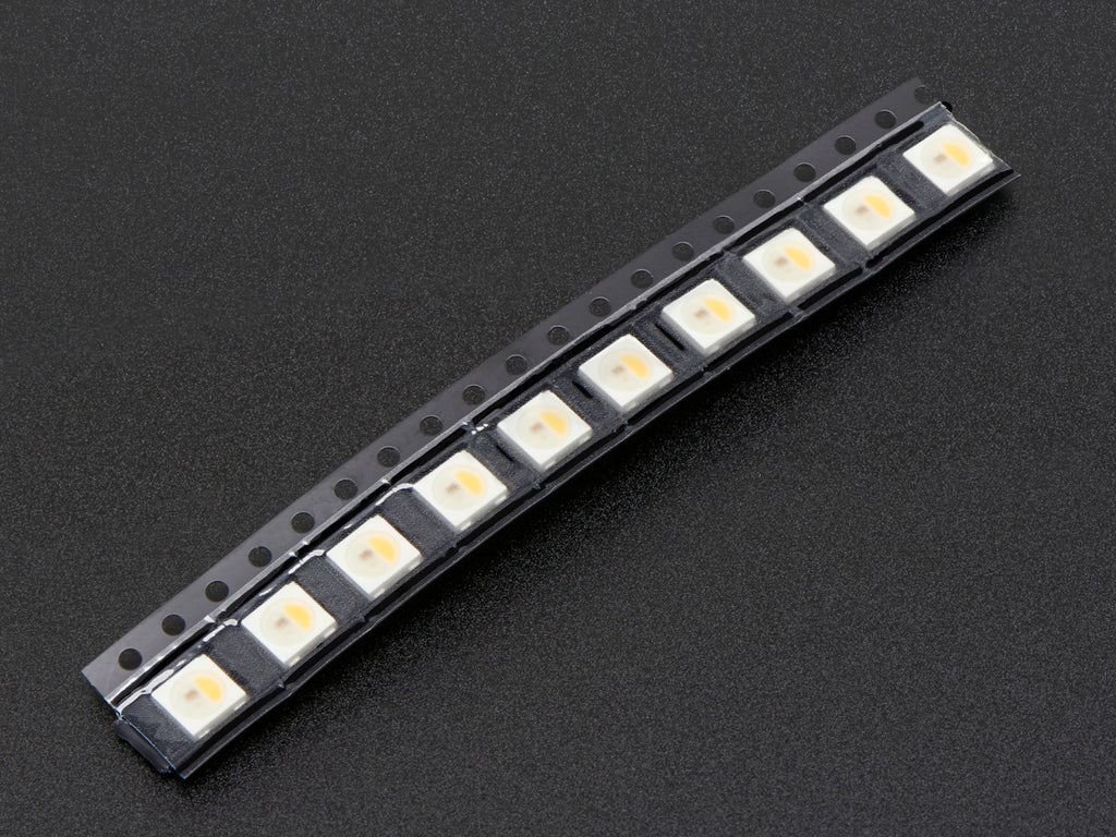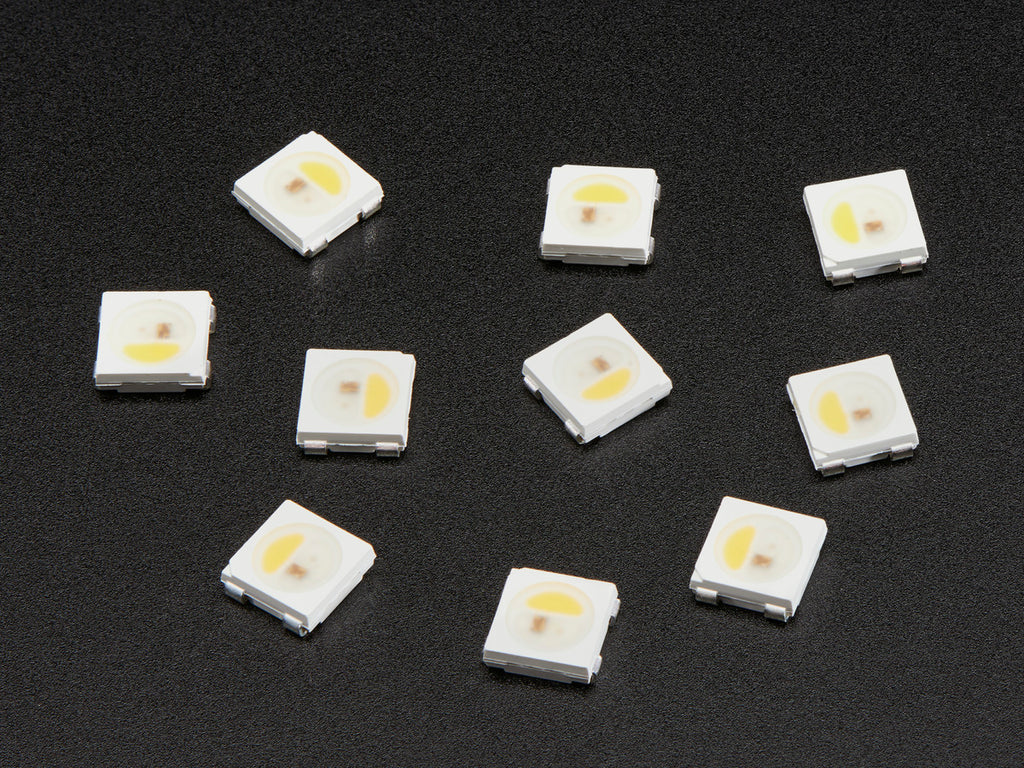 This is the RGB + Warm White with a White Casing version! Comes in a package with 10 individual LEDs, that you can solder yourself into any design you like. We have tons of different NeoPixel LEDs to choose from!