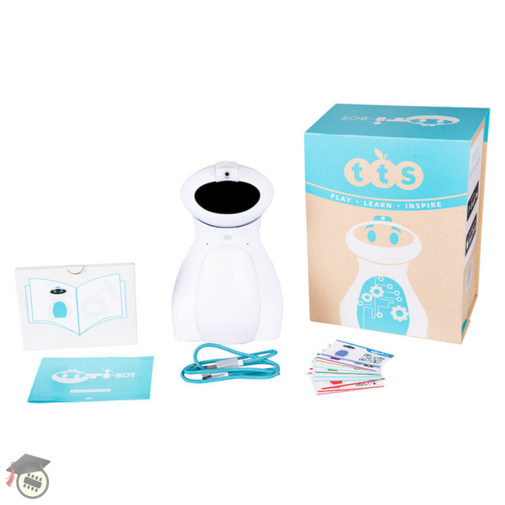 Oti-Bot can be programmed by students to support Computing outcomes. He is equipped with accurate programmable caterpillar tracks, a line follower, colour sensor, programmable pen holder, programmable LED tummy, Camera, programable head movement, programmable emotions programmable capacitive touch sensors, microphone and speaker. In addition to his programmable capabilities, Oti-Bot can be used as a storage device for students work. Oti-Bot can record video, audio and photos to his internal storage, ensuring that each students work is recorded in their own assigned folder when using their associated QR code.