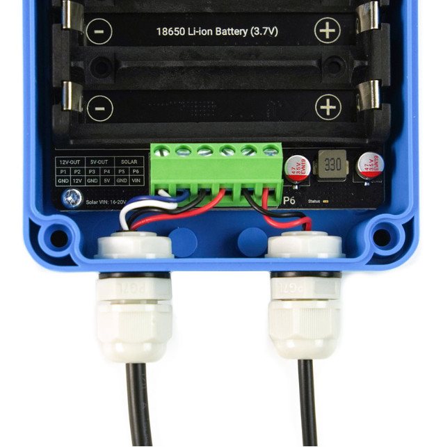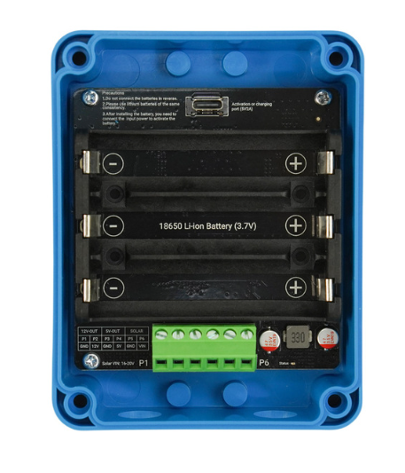 A high-efficiency 10W solar panel ensures fast energy replenishment, capable of fully charging the batteries in approximately 8 hours under strong sunlight. The solar controller supports the installation of three 18650 lithium batteries, delivering extended runtime to support uninterrupted data collection and transmission even during cloudy days or overnight periods.