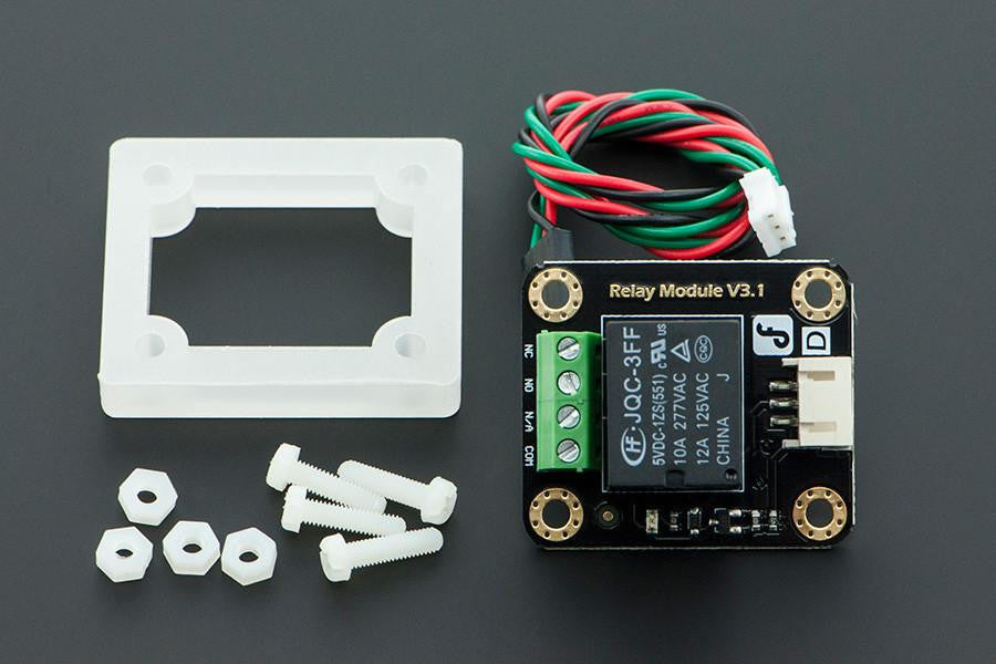 The DFRobot Relay Module is a standard relay used with a controller board to interface external electrical circuits or modules. Some of the most common applications with Arduino are: Home lighting, electrical appliances of high power and other equipments. The modular design makes it easy to integrate with a controller board. The Relay integrates a status LED, in order to acknoledge visually it's status ON or OFF. It can be controlled through the digital IO port, with a simple HIGH or LOW on Arduino compatible boards. Other boards will work requiring same voltage level. Other usages include control of solenoid valves, lamps, motors and other high current or high voltage devices.