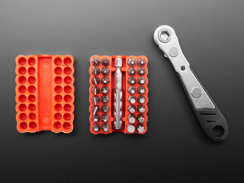 What drew us to this ratcheting screwdriver is its slim compact size, great for any size toolkit, as well as the smooth ratchet which can be easily selected either tighten or loosen. Included are 33 bits that cover anything you might need