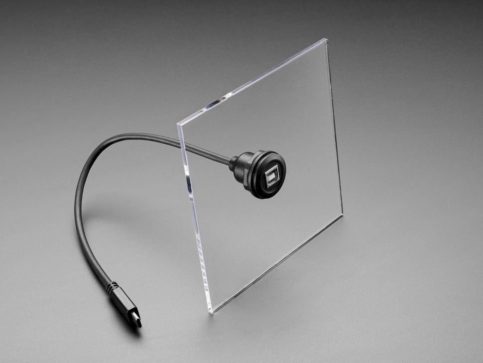 If you need to add a panel-mount connection for USB C, but don't have the time or tools to cut a custom oval or square hole, this USB C plug to USB Printer B socket Round Panel Mount Cable is the easiest and fastest way to panel-ify your project. It's about 30mm in diameter, so you can drill a hole in your wood, plastic or metal with a common hole-saw or bit, no special shapes or filing required. Un-screw the plastic nut, insert the plug and re-attach. Ta-da! Now you have a USB C plug to USB B socket adapter!