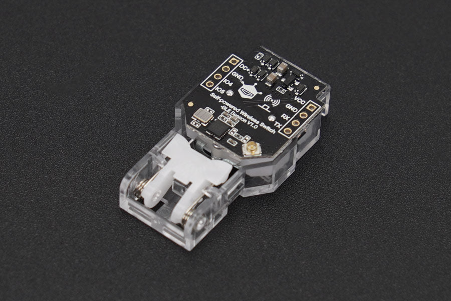 The self-powered wireless switch series by DFRobot advances the traditional wireless control paradigm by completely removing the need for batteries. This next-generation self-powered wireless switch - BLE Beacon, unlike its predecessor, the self-powered wireless switch - 433MHz, features a micro power generator and an energy storage RF circuit that captures kinetic energy from each press, converting it into electrical power. This energy is then stored and utilized to transmit wireless signals, making the switch maintenance-free and ideal for long-term applications like wireless doorbells, call buttons, ordering devices, and wall switches.