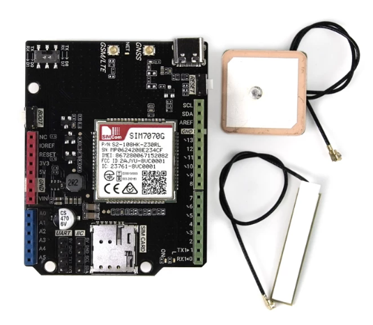 The NB-IoT expansion board, designed specifically for Arduino controllers, is globally frequency-compatible, supporting CAT-M, NB-IoT, GSM, GPRS, EDGE communication methods, and GNSS satellite positioning functions.