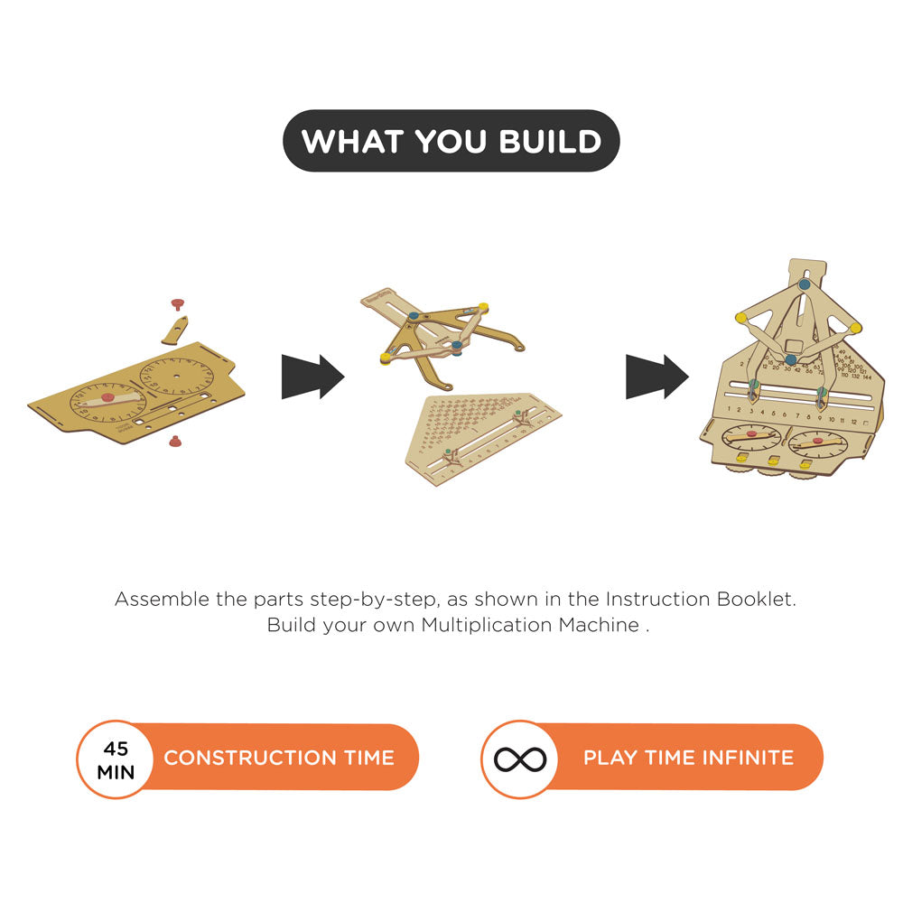 Smartivity Fidget Digit Multiplication Machine - Two oneza two, two twoza four... Cram it till you jam it, old school style! So, we have created a multiplier to help your child learn the tables in a different and fun way! This mechanical toy uses a set of pivoting links to tell you the multiplication product of 2 numbers. With two built-in number dials, select two random numbers from 1 to 12 and multiply them mentally. Then, note the guessed answer in the section given, and check if the answer is correct, using the links and pointers. Smartivitys Multiplying Machine is the most appropriate and relevant study table accessory for kids, helping them get stronger and faster at mental multiplication. (includes richly illustrated, easy-to-understand, step-by-step Instruction Booklet) For Ages: 6 years and older D.I.Y. Time: 45 min | Play Time: Unlimited Skills Developed: Analytical Skills, Creativity, Motor Skills, Practical Skills