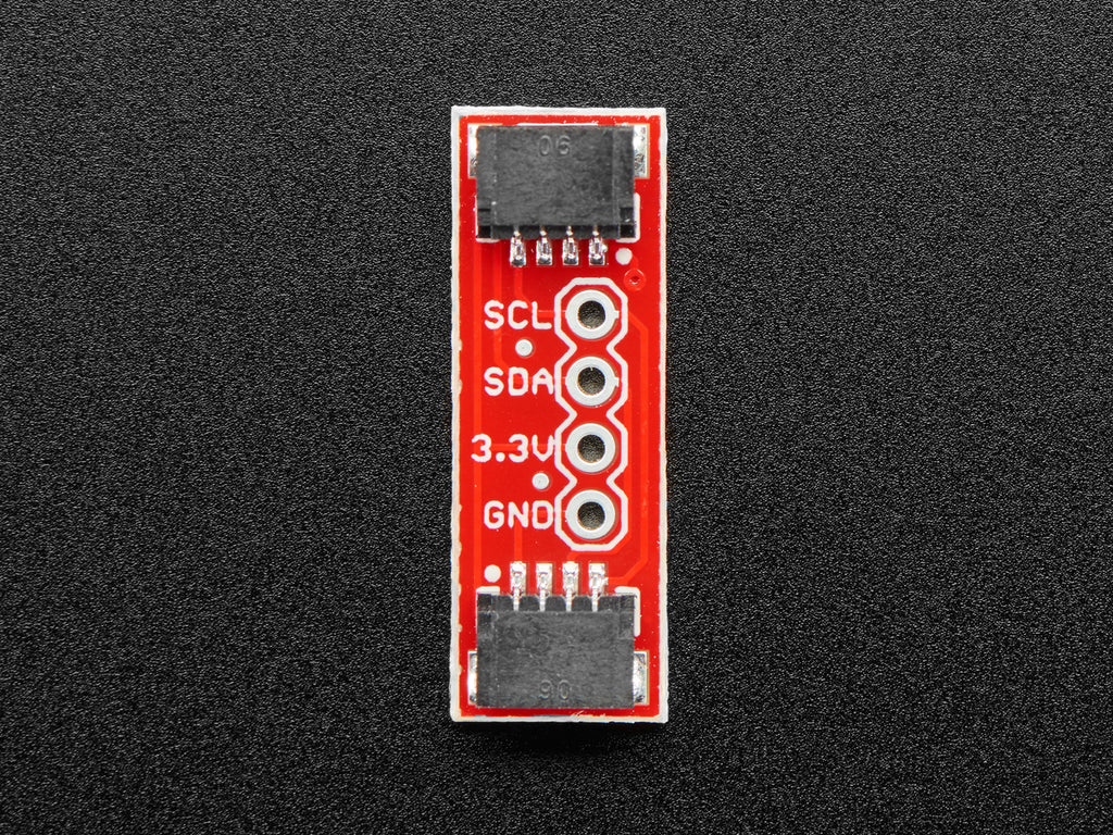 The Qwiic Adapter has two JST SH connection ports, all on the same I2C bus. Four plated through holes are broken out for SCL, SDA, 3.3V and GND. Simple? Yes, and very effective!