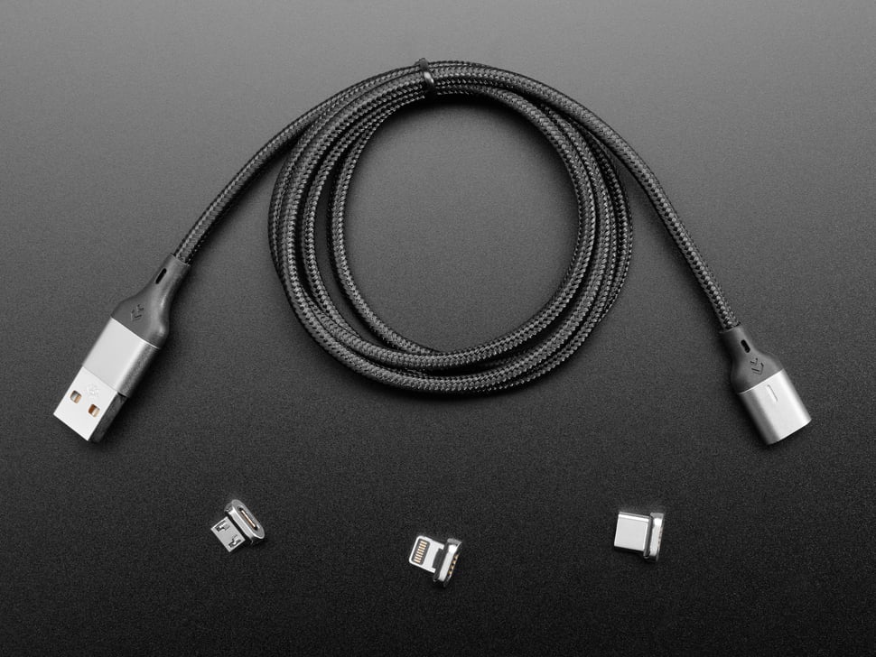 Our latest addition to the collection is this 1-meter-long Black Magnetic USB A with Magnetic Tips for USB C, Lightning / iOS, and USB micro B! It's a luxurious cable that will make managing lots of dev boards or gadgets super easy.