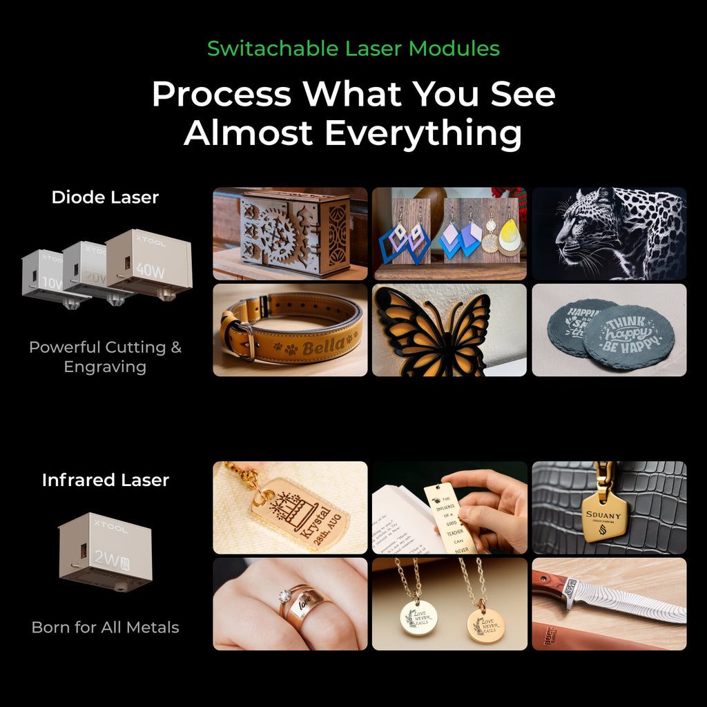 Maximize cutting productivity with 40W power, effortlessly engraving and cutting thick materials, while automating large projects and batch production